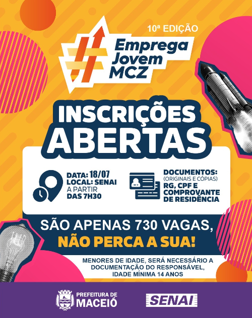 O programa Emprega Jovem, da Prefeitura de Maceió em parceria com o Serviço Nacional de Aprendizagem Industrial (Senai), chega a sua 10ª edição e oferece 730 vagas, distribuídas em 24 turmas, para diversos cursos profissionalizantes.
