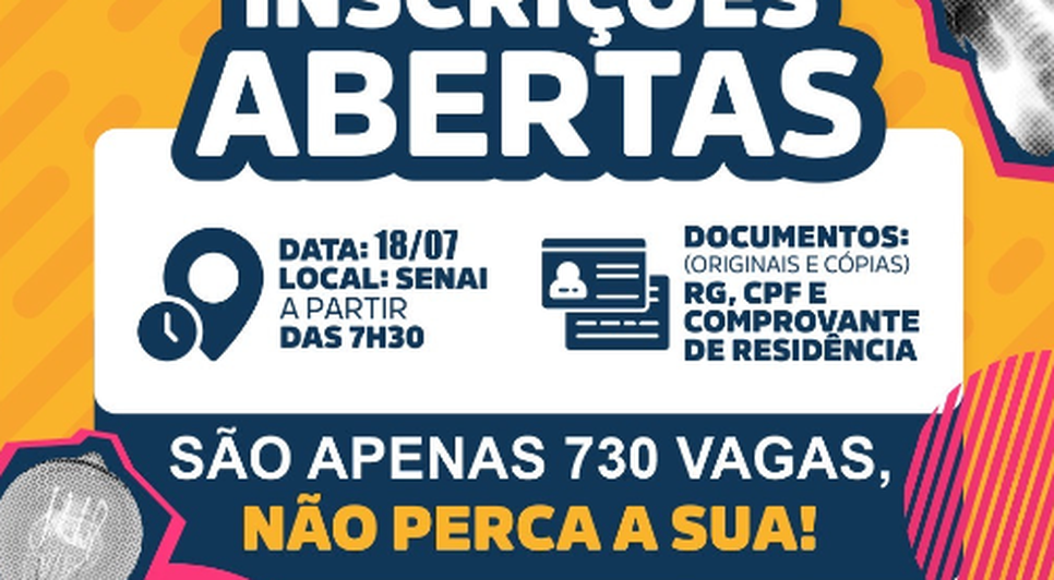 As inscrições acontecerão na próxima quinta-feira (18/07), a partir das 7h30, no Senai Poço, localizado na Rua Pedro Américo, n° 18 Poço, Maceió - AL, CEP: 57025-890.