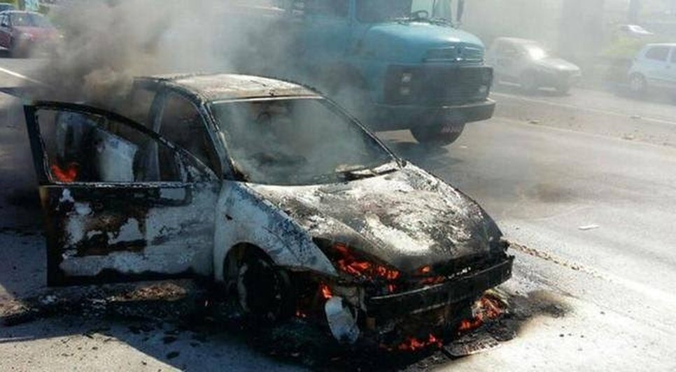 Homem bate em poste após perder controle da direção e veículo pega fogo em seguida