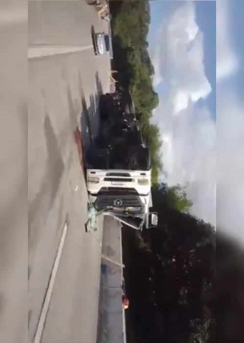 Um dos sentidos da BR-101, no km 70, na cidade de Messias, em Alagoas, está interditado após um caminhão tombar na tarde desta terça-feira (23).