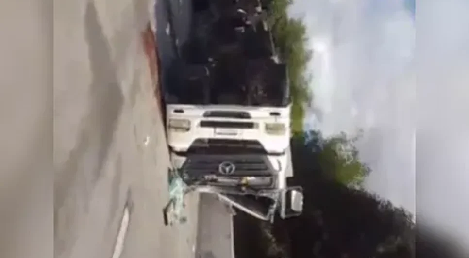 Conforme a Polícia Rodoviária Federal (PRF), o caminhão estava carregado com pallets. Ele está tombado na faixa da esquerda.