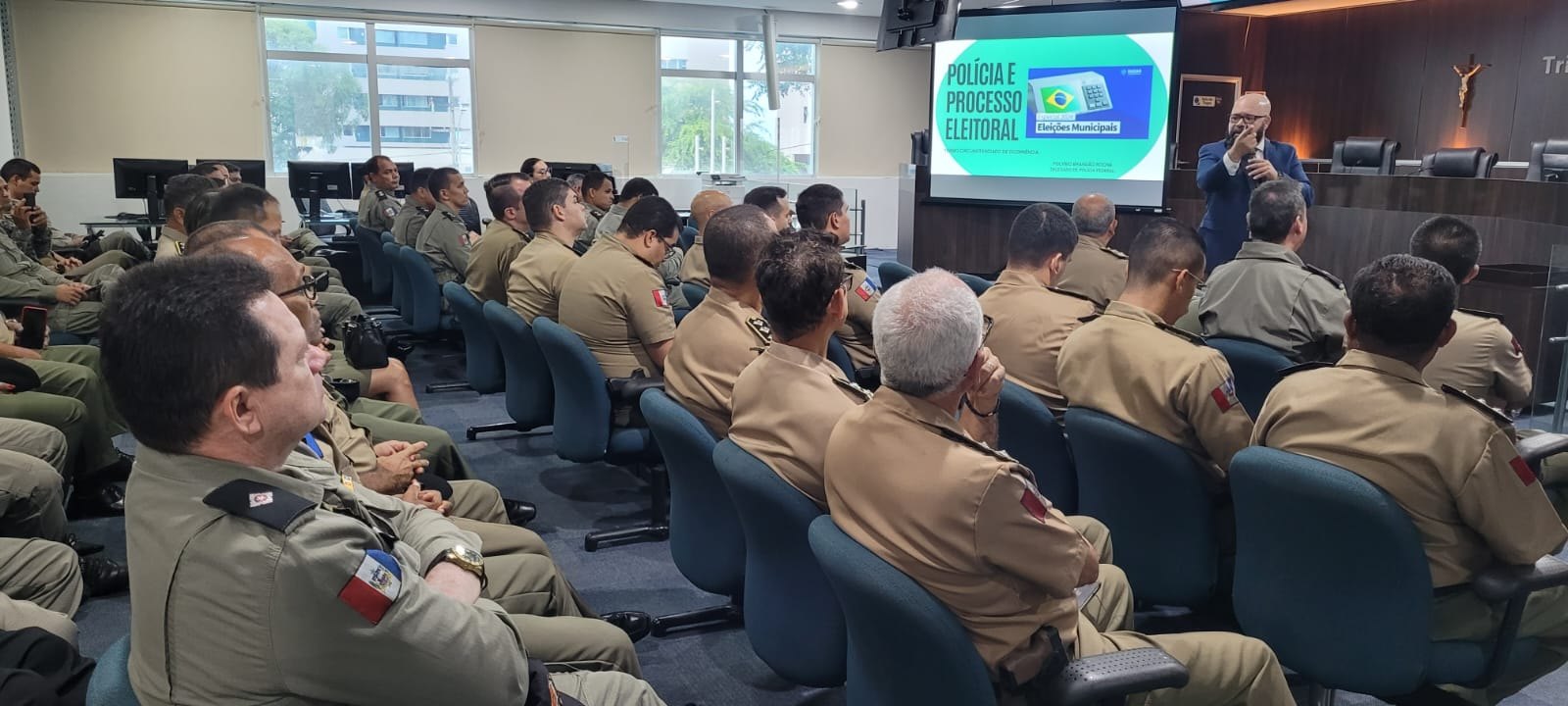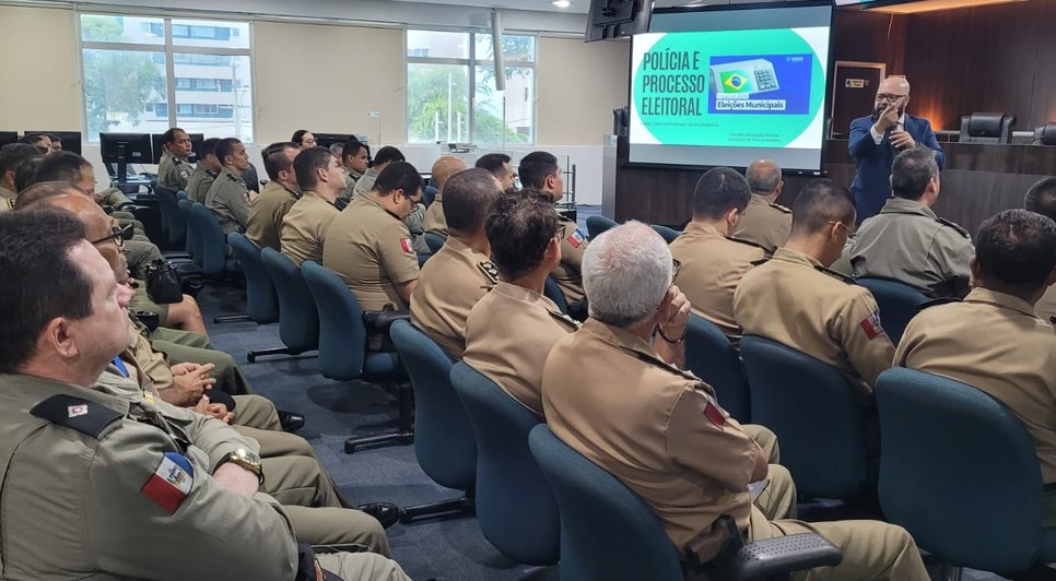 Nesta quinta-feira (25), policiais militares participaram de capacitações sobre a elaboração e o peticionamento dos Termos Circunstanciados de Ocorrência Eleitoral (TCOE), fruto de parceria entre o Tribunal Regional Eleitoral de Alagoas (TRE/AL) e a Polícia Militar de Alagoas (PM/AL). No auditório do Tribunal, oficiais responsáveis pelas OPMs (Organização Policial Militar) de todo o Estado aprenderam um pouco mais sobre a legislação e os crimes eleitorais, com o delegado da Polícia Federal Políbio Rocha.