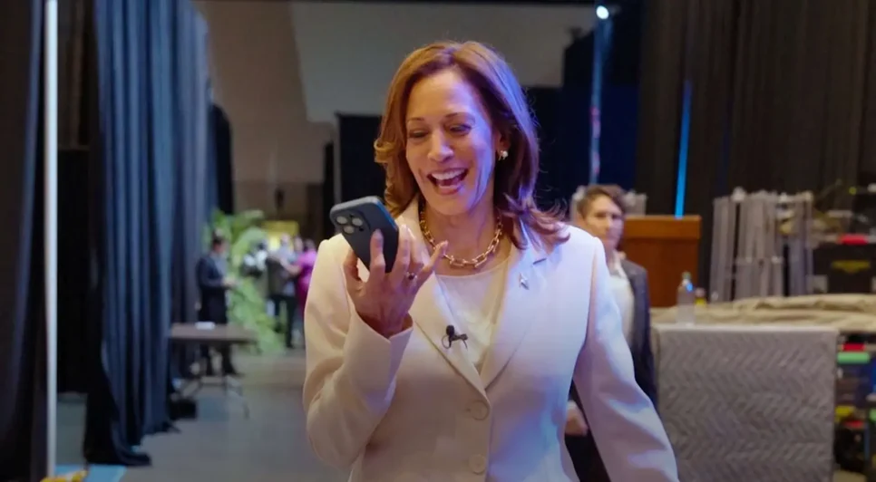 No vídeo que mostra o momento do telefonema, Michelle Obama disse que está orgulhosa de Harris e que esta eleição será “histórica”.