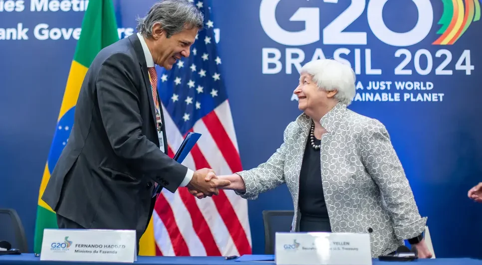 O anúncio foi feito pelo ministro da Fazenda, Fernando Haddad, e a secretária de Tesouro dos Estados Unidos, Janet Yellen, nesta sexta-feira (26), no Rio de Janeiro.