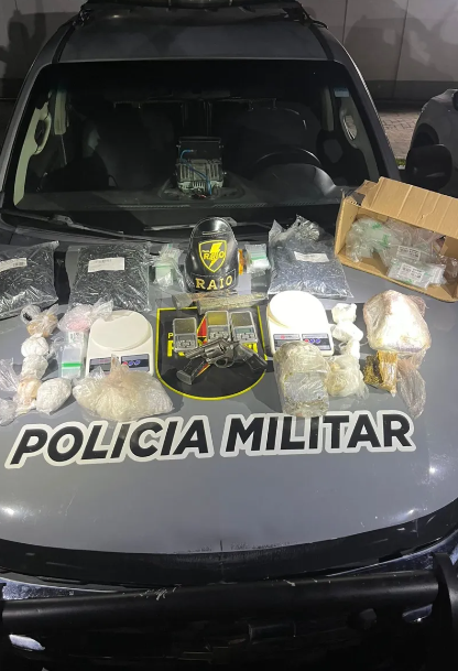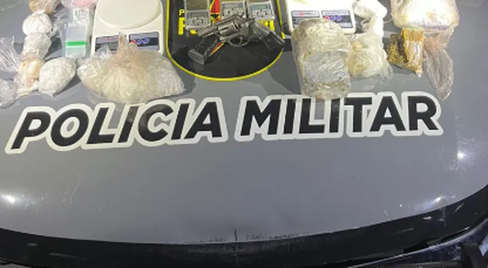 Foram apreendidos 700 gramas de maconha, 590 de cocaína, além de 1,1kg de crack. Os suspeitos foram encaminhados para a Central de Flagrantes e autuados por tráfico de entorpecentes e porte ilegal de arma de fogo.