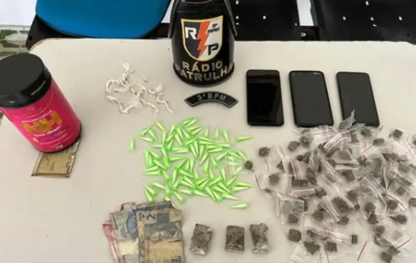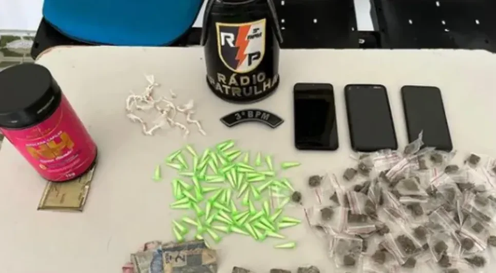 Nesta segunda-feira (29), o 3° Batalhão da Polícia Militar de Arapiraca apreendeu drogas e três celulares no bairro Canafístula. Os itens apreendidos estavam com uma mulher, não identificada, que ficou presa em flagrante.
