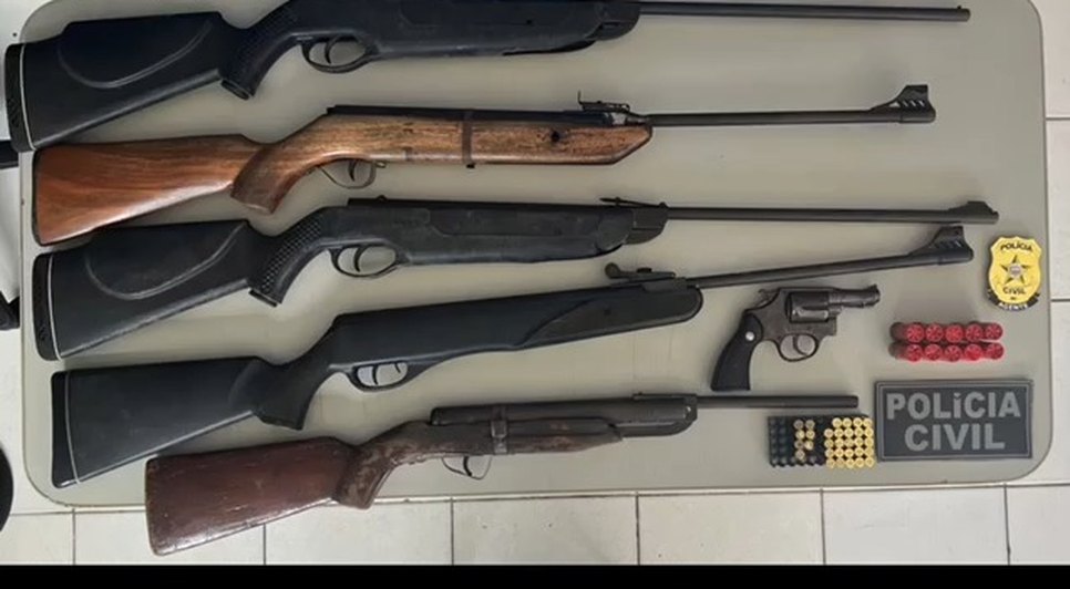 Na casa da suspeita, os policiais apreenderam um revólver, calibre 38, munições de diversos calibres e cinco armas de pressão, todas em condição irregular. Ela foi conduzida para a DHA, onde foram realizados os procedimentos legais.