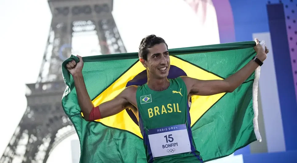 Na primeira prova do atletismo nos Jogos Olímpicos de Paris, o brasileiro Caio Bonfim faturou a medalha de prata na marcha atlética. Foi a primeira conquista do atleta de 33 anos, que faz a quarta participação olímpica.Caio Bonfim já havia se aproximado da medalha nos Jogos Rio 2016, quando terminou a prova da marcha na quarta posição, até então o melhor resultado para o Brasil na prova. Em Londres (2012), sua estreia olímpica, ele passou mal e não completou o percurso. E em Tóquio (2021), o brasiliense terminou na 13ª colocação. O marchador também tem no currículo duas medalhas de bronze em mundiais de atletismo (2017 e 2023), além de três medalhas na prova individual em Jogos Pan-Americanos (prata em 2019 e 2023, bronze em 2013). receber a medalha de prata