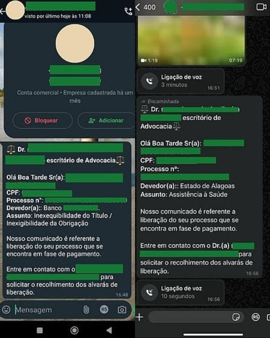 A Defensoria Pública de Alagoas (DPE/AL) alerta a população alagoana, por meio de nota, sobre aplicação de golpes contra as pessoas assistidas pela própria instituição. Até onde se tem de conhecimento sobre o golp3 é que as mensagens eram enviadas pelos golpistas aconteciam via WhatsApp.