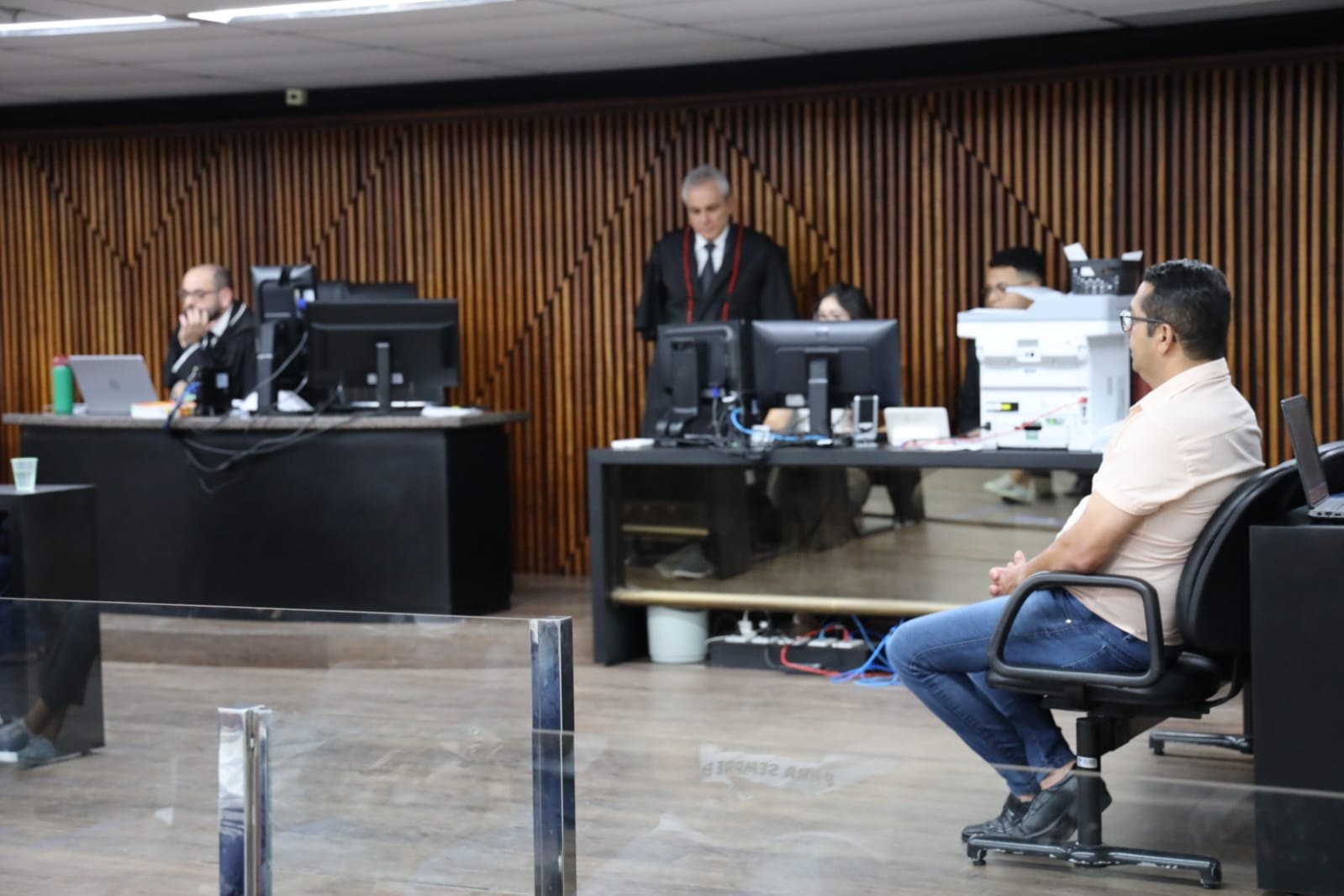 O julgamento é presidido pelo magistrado, Yulli Roter e Alison é acusado de homicídio triplamente qualificado.