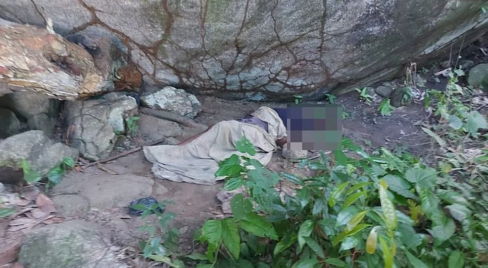 Desde o crime, o homem estava foragido, vivendo escondido na mata e dormindo próximo às pedras. O corpo dele foi localizado em uma região de difícil acesso.