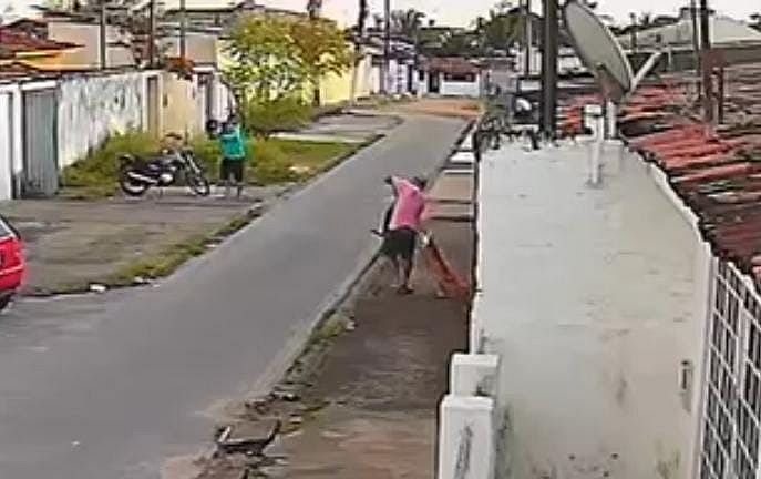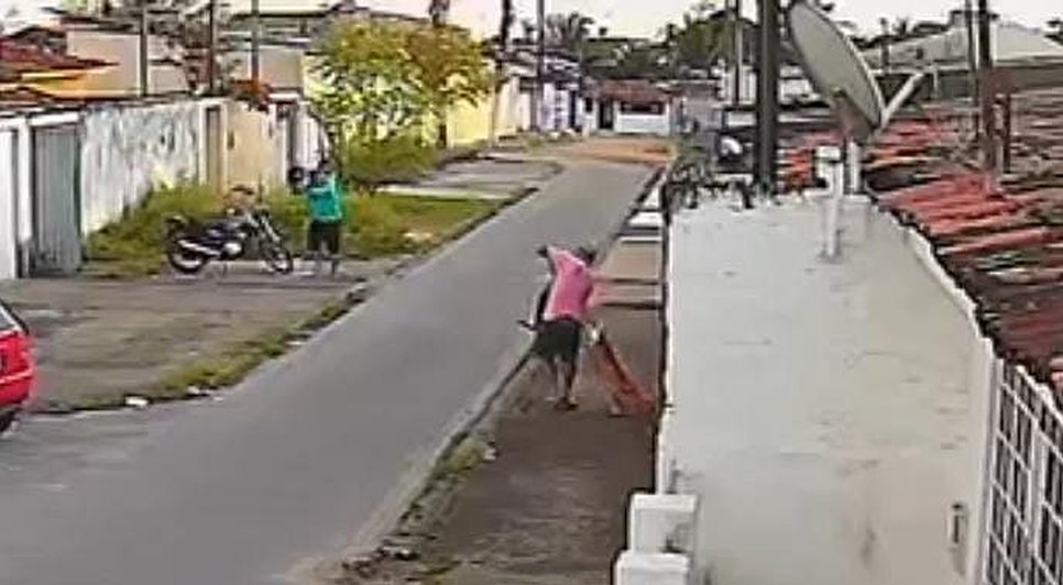 O ataque foi registrado por uma câmera de segurança. Nas imagens é possível ver o momento em que o pitbull escapa da residência após a porta da garagem se abrir.