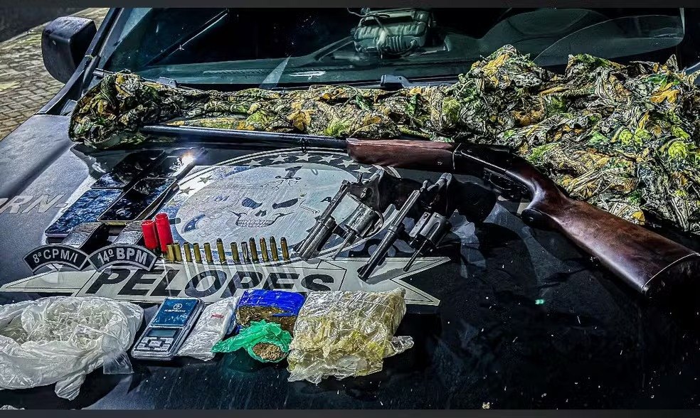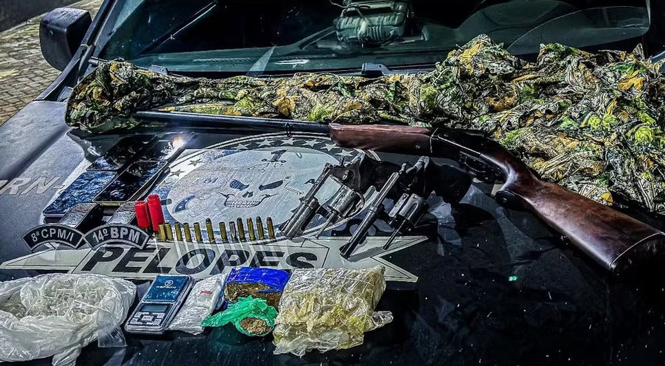 Além das drogas e arsenal, os policiais encontraram dentro do veiculo rádios de comunicação e várias peças de roupas camufladas. O caso foi registrado no sábado (10).
