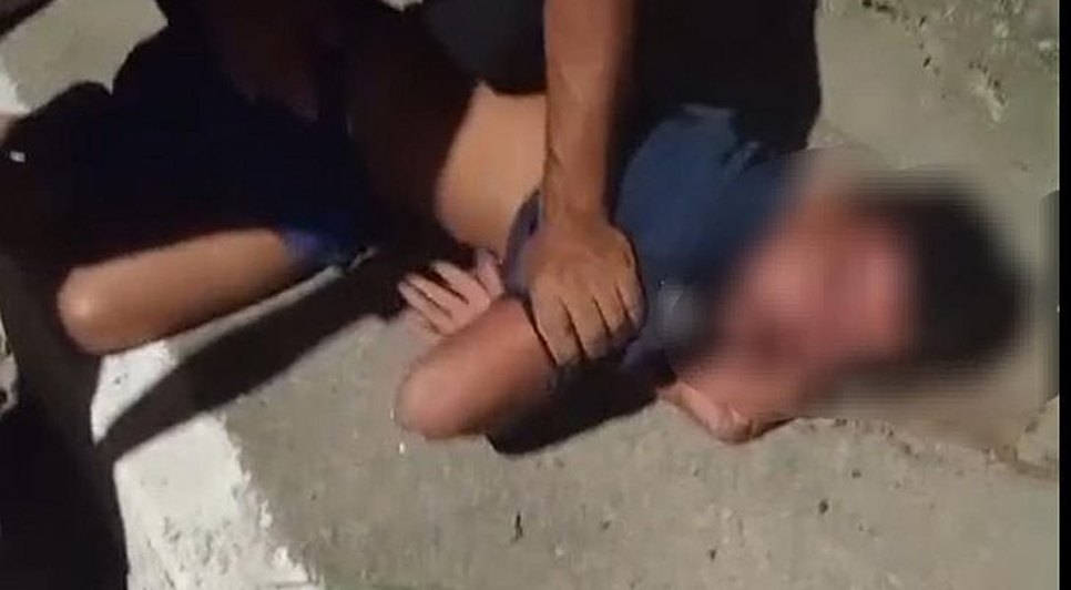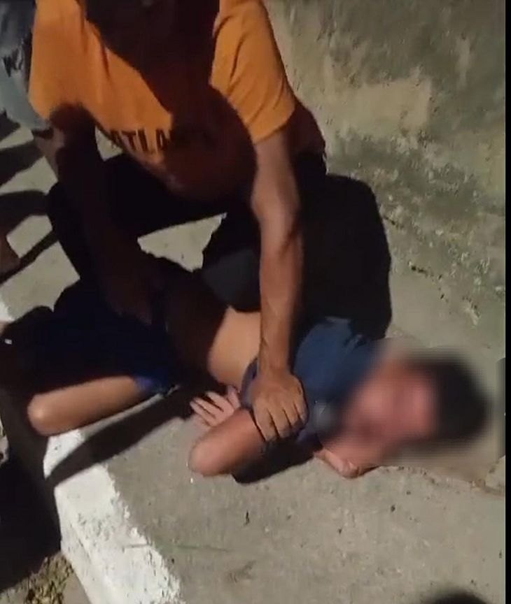 Vídeo gravado por populares mostram o suspeito sendo agredido após ser flagrado com a garota em um terreno baldio, praticando ato sexual.