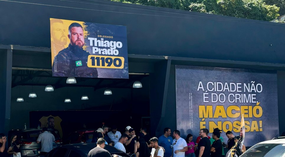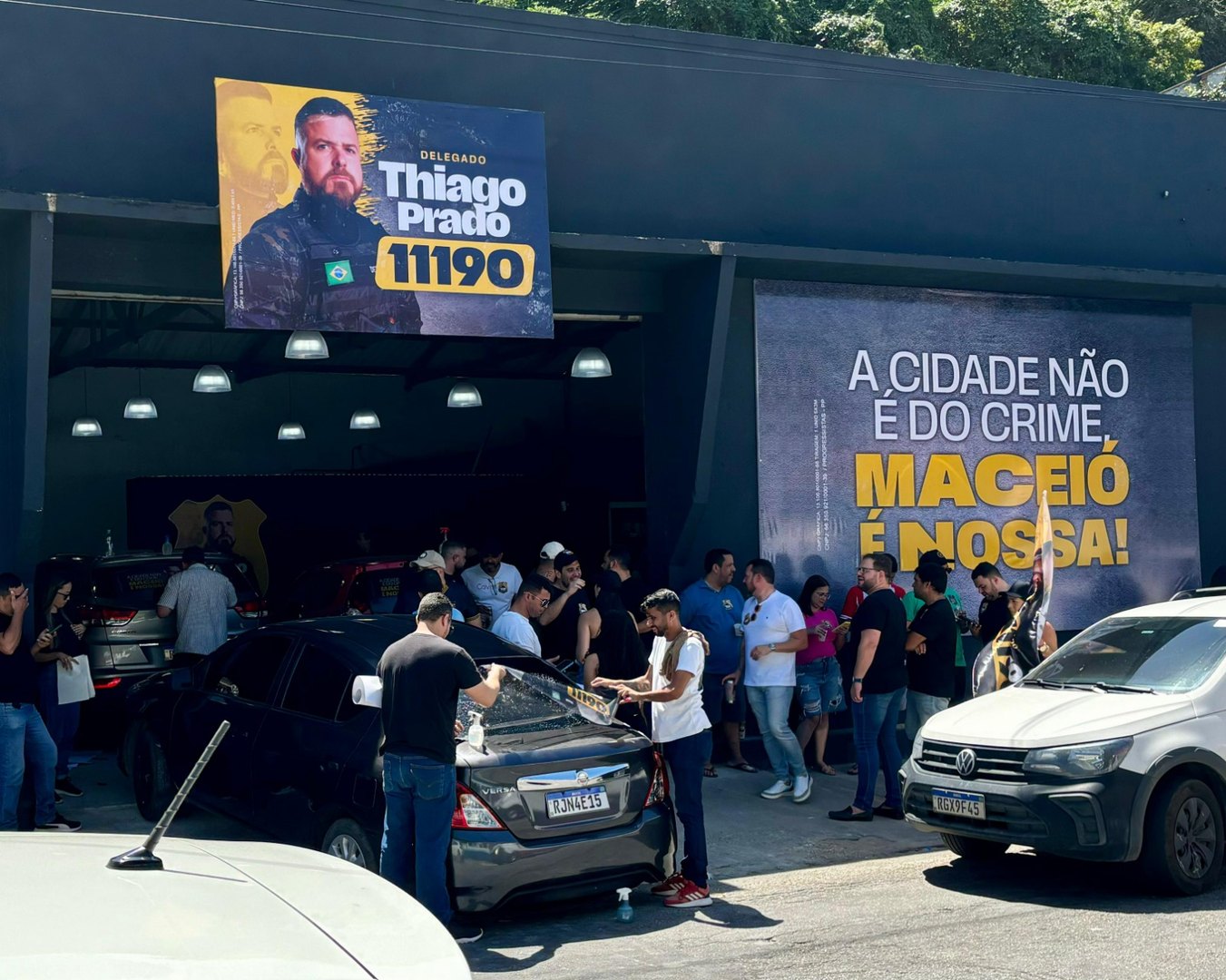 Em busca de ser o verdadeiro representante da segurança pública na Câmara Municipal de Maceió, o Delegado Thiago Prado (PP) deu início a campanha ao cargo de vereador com a inauguração do comitê e um grande adesivaço. Diversos apoiadores compareceram ao QG do Delegado, localizado na rua Barão de Atalaia, no Centro, neste sábado (17).