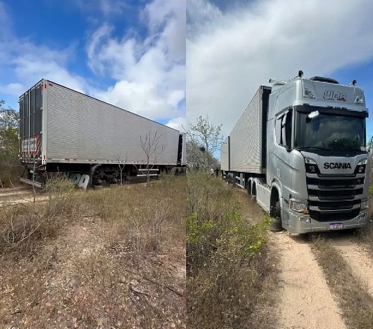 Dono do caminhão roubado no sertão de Alagoas foi feito de refém por criminosos em Delmiro Gouveia. Ele foi surpreendido enquanto dormia na BR-423, quando os bandidos quebraram o vidro do veículo e o levaram para uma fazenda próxima.