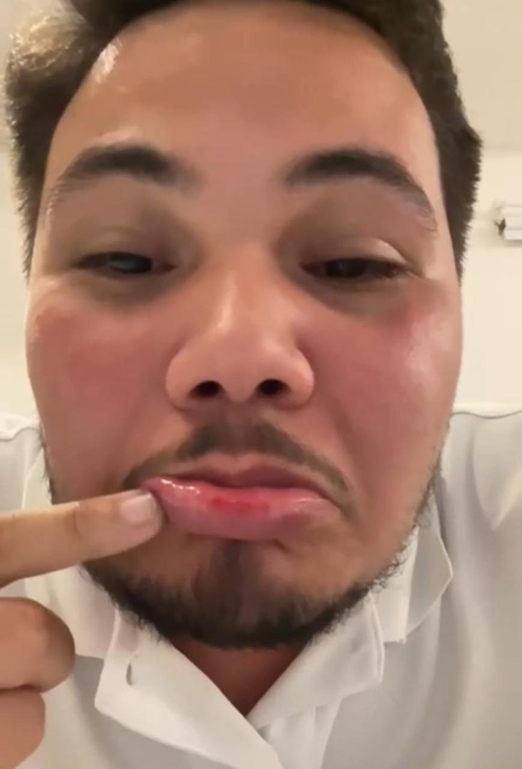 “Estávamos em uma mesa de bar tentando resolver questões políticas quando Luís Fernandes não conteve a emoção e me agrediu fisicamente me dando um tapa no meu lábio”, disse o jovem ao mostrar o machucado na boca.