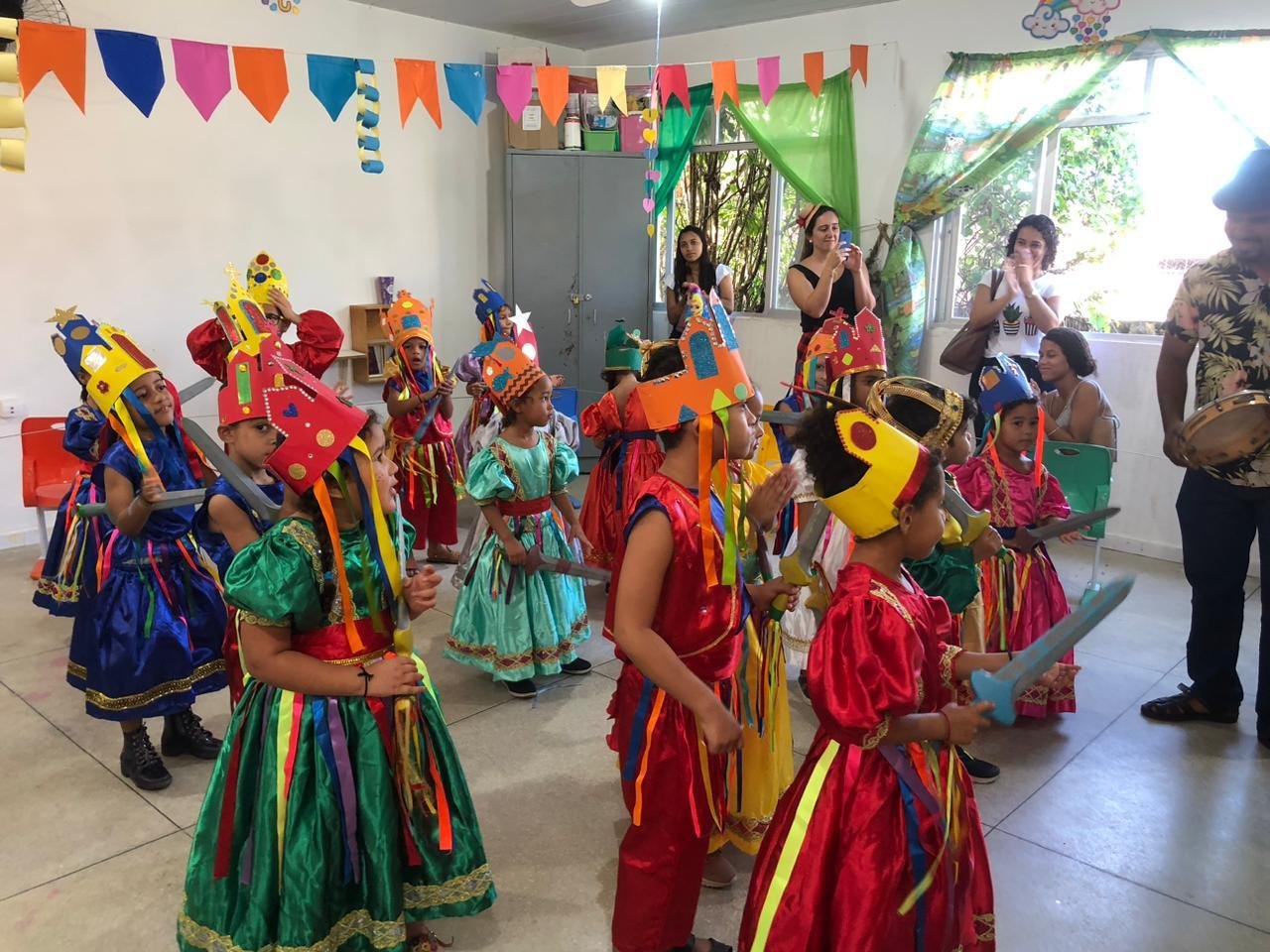 A diretora do CMEI, Ana Cristina de Oliveira, contou que as experiências dos alunos com a cultura popular tradicional são feitas de diferentes maneiras, por meio da interação com os símbolos, personagens, musicalidade, ritmos, sonoridade, melodia, o cantar e dançar. Com a mediação do Mestre Nildo Verdilinho, as crianças aprendem sobre o Coco de Roda e o Guerreiro e fortalecem sua conexão com a cultura de Alagoas.