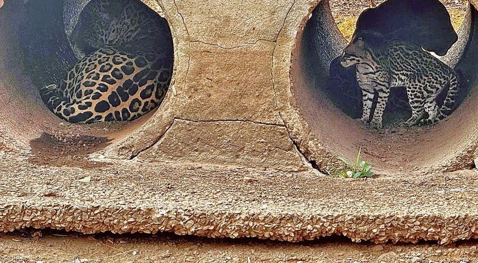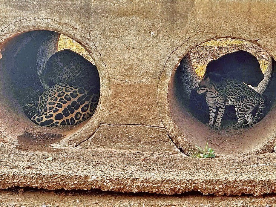 Com o constante aumento das queimadas no Pantanal, os animais vêm buscando abrigos para se proteger. Esta semana, a ONG Onçafari encontrou duas onças-pintadas, Divino e Timburé, escondidas em manilhas de concreto.