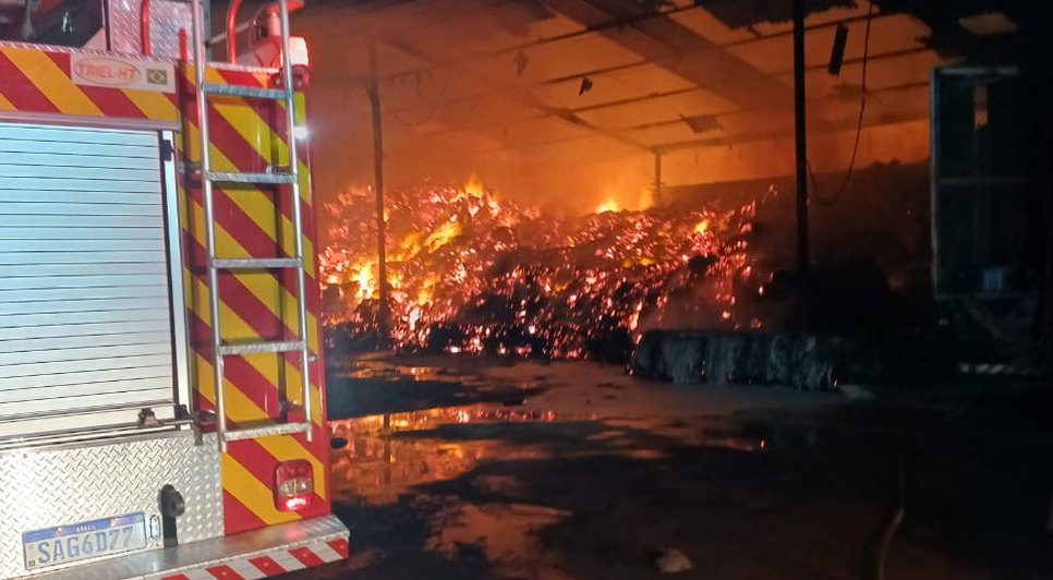 Incêndio destrói galpão que armazenava fibra de coco em Roteiro
