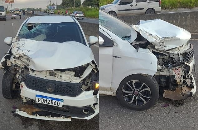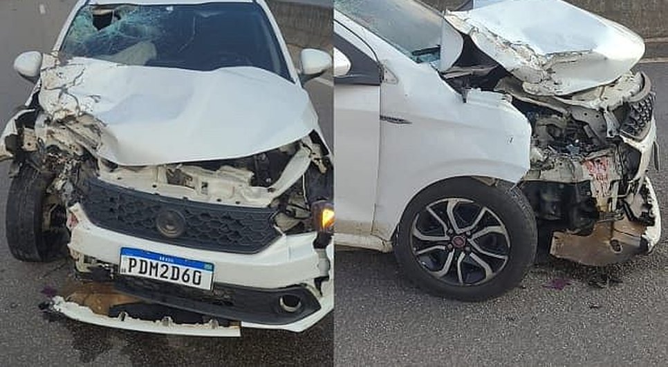 Imagens do acidente mostram que o Fiat Argo teve o para-choque e o para-brisa danificados, com a parte dianteira do veículo destruída. Não há informações sobre o estado de saúde do motorista do carro.