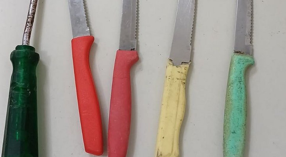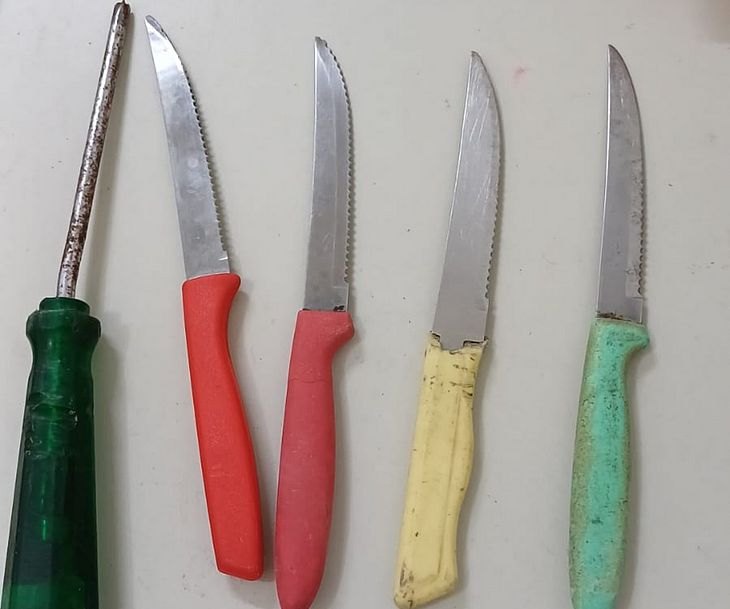 As facas foram apreendidas.