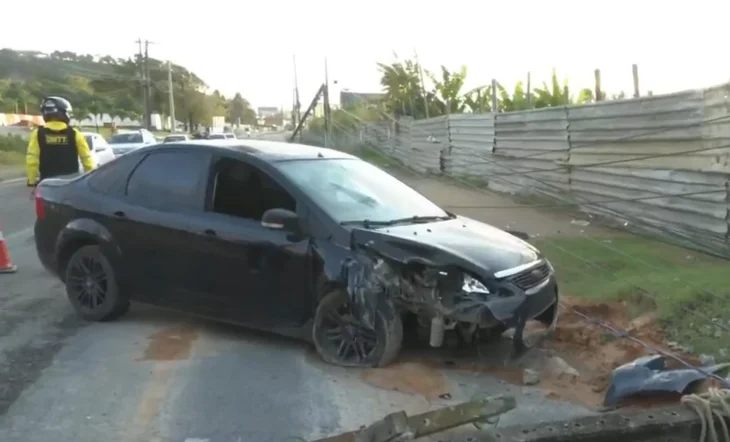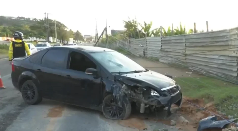 Na noite de quinta-feira (12), um acidente envolvendo um carro e um poste causou transtornos na Avenida Gustavo Paiva, em Cruz das Almas, Maceió. O Ford Focus preto, com a frente destruída, ainda estava na via na manhã desta sexta-feira (13), com o trecho bloqueado e fios caídos.