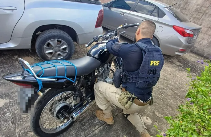 Uma motocicleta adulterada foi apreendida pela Polícia Rodoviária Federal (PRF), na terça-feira (24), no município de São Sebastião, interior de Alagoas. O veículo, que estava estacionado em uma oficina, possuía registro de furto desde setembro de 2018.