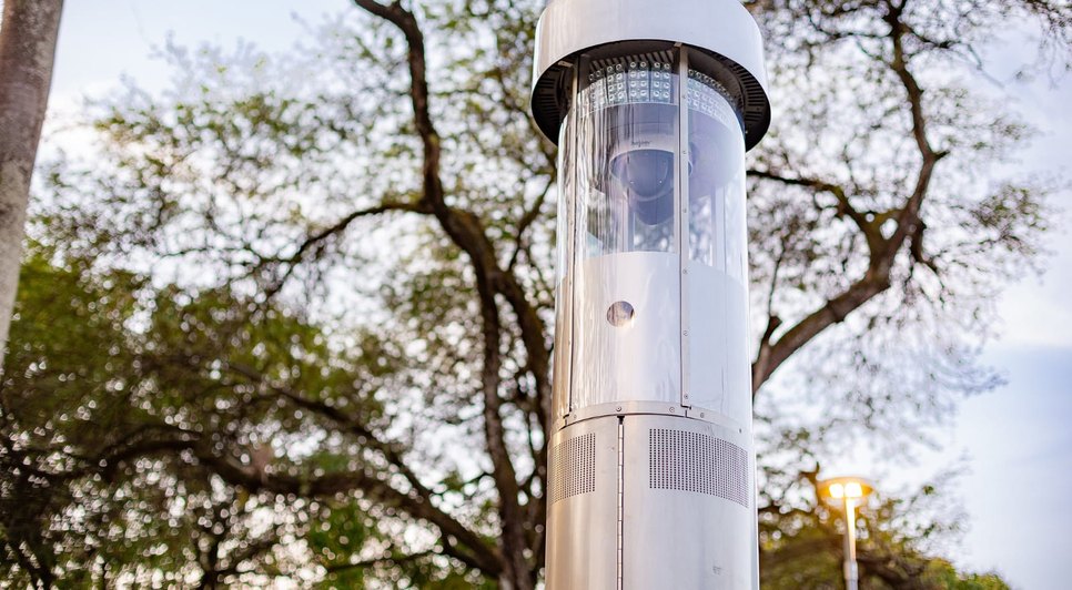 “Com quatro metros de altura, os equipamentos reúnem várias funcionalidades em um único dispositivo, incluindo estrutura robusta, sistema de giroflex que remete às viaturas policiais, comunicador de alta potência que envia alertas à população e mensagens automáticas de áudio para campanhas educativas e orientativas, além da captura de imagens em 360° simultâneas”, conta Edison Endo, diretor da Helper Tecnologia, empresa responsável pelo desenvolvimento dos totens de segurança.