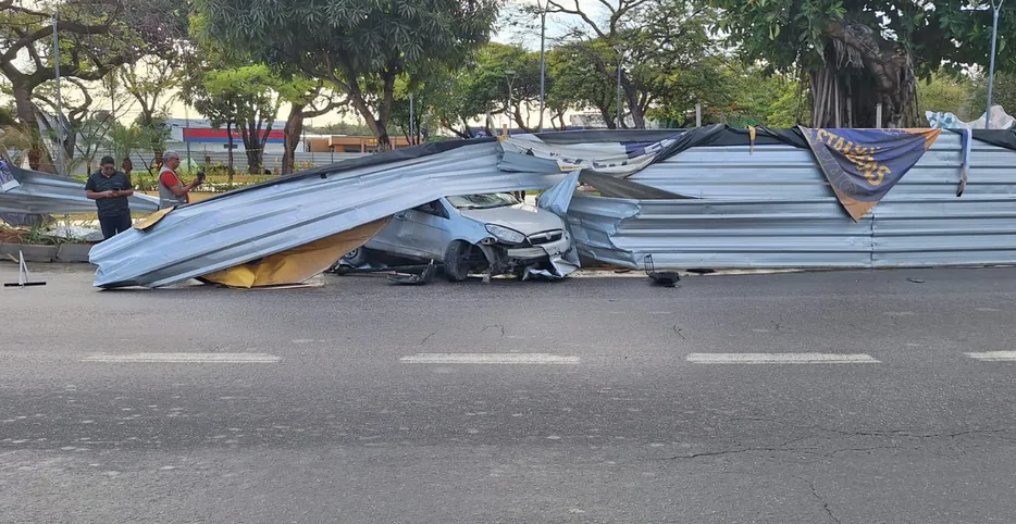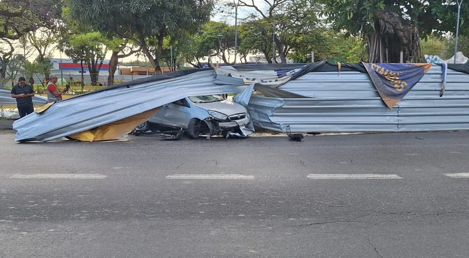 Pneu estoura e carro colide contra placas de proteção na Praça Centenário