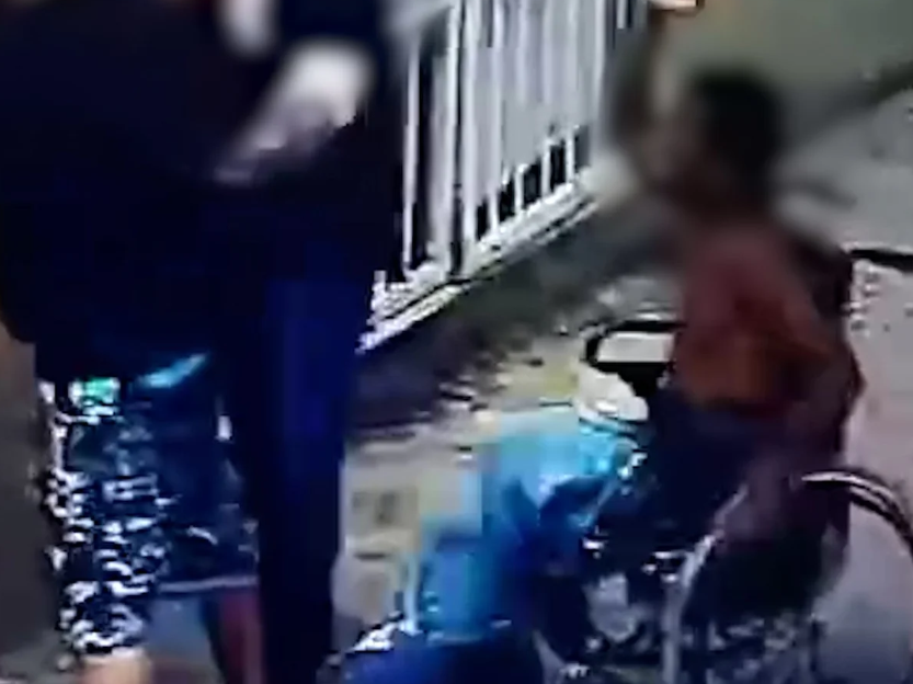 Também é possível ver o momento em que surge um homem em uma cadeira de rodas, que se aproxima sem chamar atenção e crava uma faca nas costas do agente que iniciava o procedimento de revista. A filmagem é interrompida quando o policial esboça reação de surpresa e, sem rompantes, aborda o cadeirante.