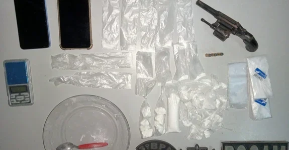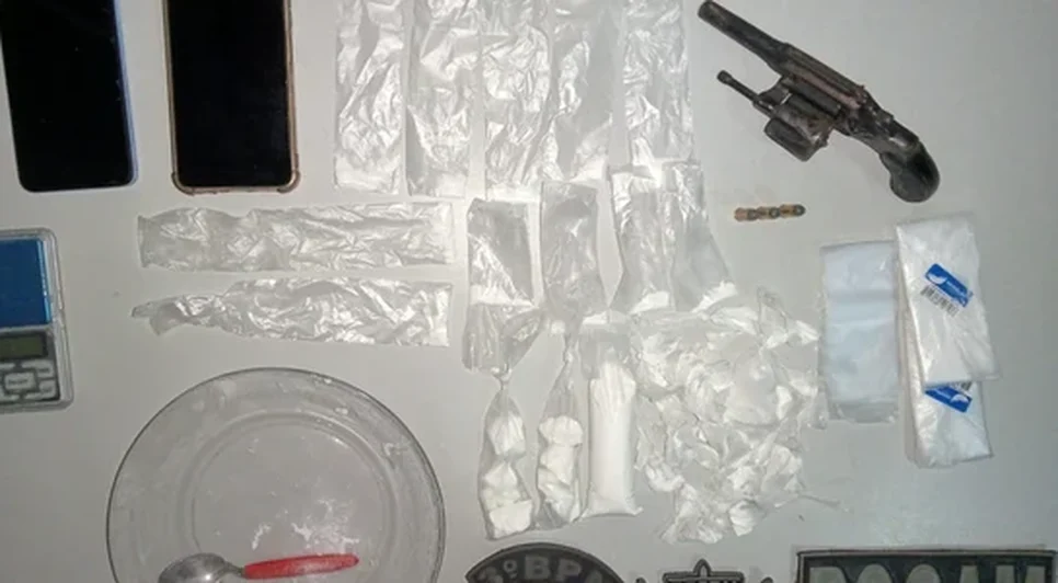 Os policiais recuperaram um revólver calibre 32 com três munições e encontraram no telhado várias embalagens com cocaína. No interior do bar, foram localizados outros indícios de tráfico, como uma balança de precisão e utensílios usados para o preparo da droga. Com as provas em mãos, a equipe deu voz de prisão aos envolvidos.