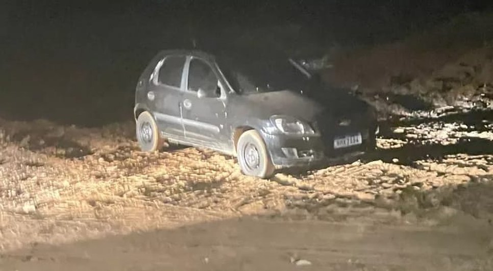 Os criminosos conseguiram fugir e o carro foi abandonado na cena do crime.