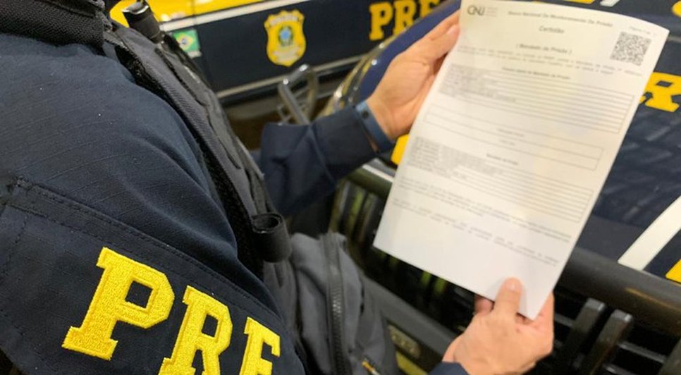 A PRF verificou a documentação do acusado durante a abordagem e localizou o mandado de prisão em aberto, em desfavor do condutor do veículo.