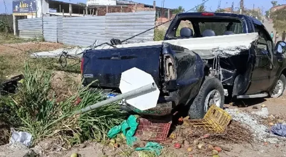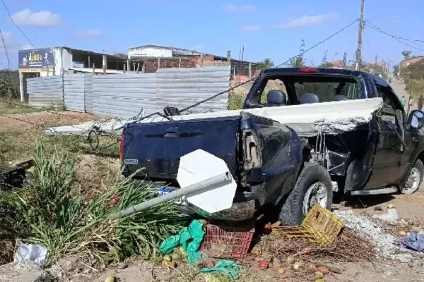 Caminhonete colide com poste e deixa dois homens gravemente feridos em Palmeira dos Índios