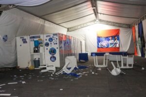 Logo após o discurso ofensivo e repleto de ódio, o que se viu no local foram cenas de violência e vandalismo. Diversas imagens mostram o estado em que ficou o comitê de Lopes, completamente destruído.