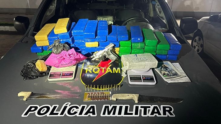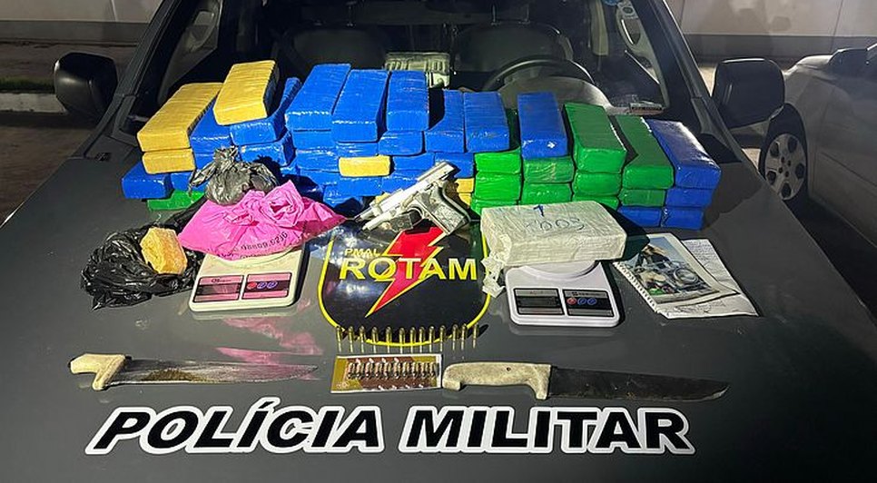 Um homem que se identificou como "armário" de uma facção criminosa (PCC) foi preso em flagrante na madrugada desta quarta-feira (9), no bairro de Cruz das Almas, em Maceió. O suspeito foi encontrado com mais de 33 quilos de drogas e três armas, após uma denúncia anônima feita ao canal Disque-Denúncia 181.