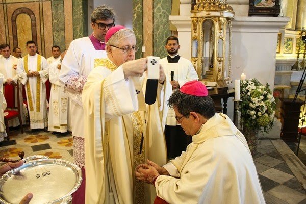 Neste sábado (12), durante a solene celebração eucarística, o Arcebispo Metropolitano de Maceió, Dom Carlos Alberto Breis Pereira, recebeu a imposição do Pálio Arquiepiscopal das mãos do Núncio Apostólico do Brasil, Dom Giambattista Diquattto.