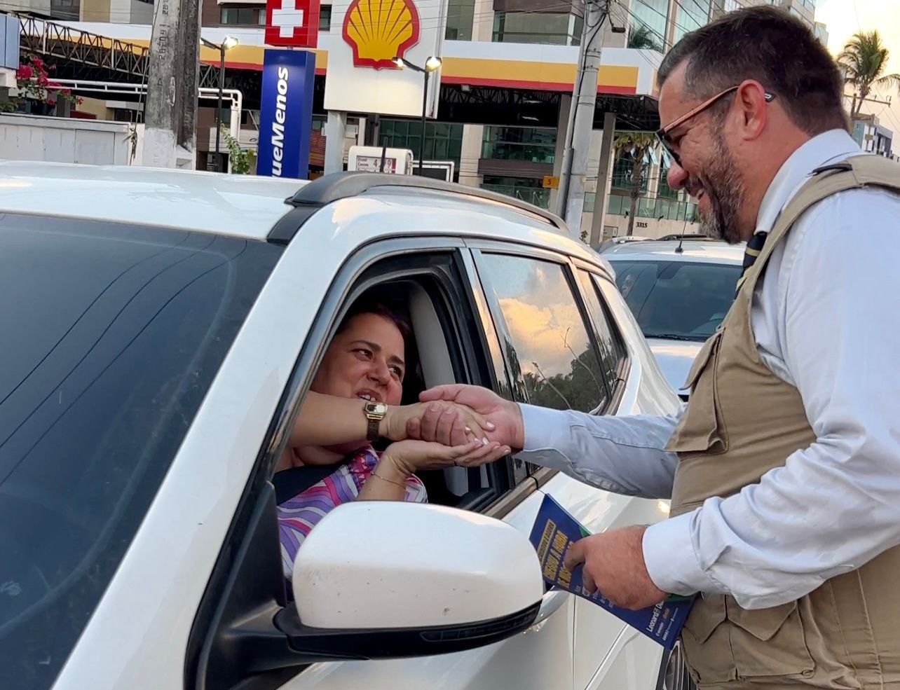 Duas semanas após ser reeleito, o vereador Leonardo Dias (PL) voltou às ruas de Maceió para uma ação de panfletagem de agradecimento. Com 10.274 votos recebidos no último dia 6 de outubro, Dias fez questão de expressar sua gratidão pessoalmente aos eleitores que o reconduziram ao cargo. A iniciativa ocorreu na tarde dessa quarta-feira (23) no cruzamento da Avenida Álvaro Otacílio com a Rua Deputado José Lages, no bairro da Ponta Verde, um dos pontos movimentados da capital alagoana.
