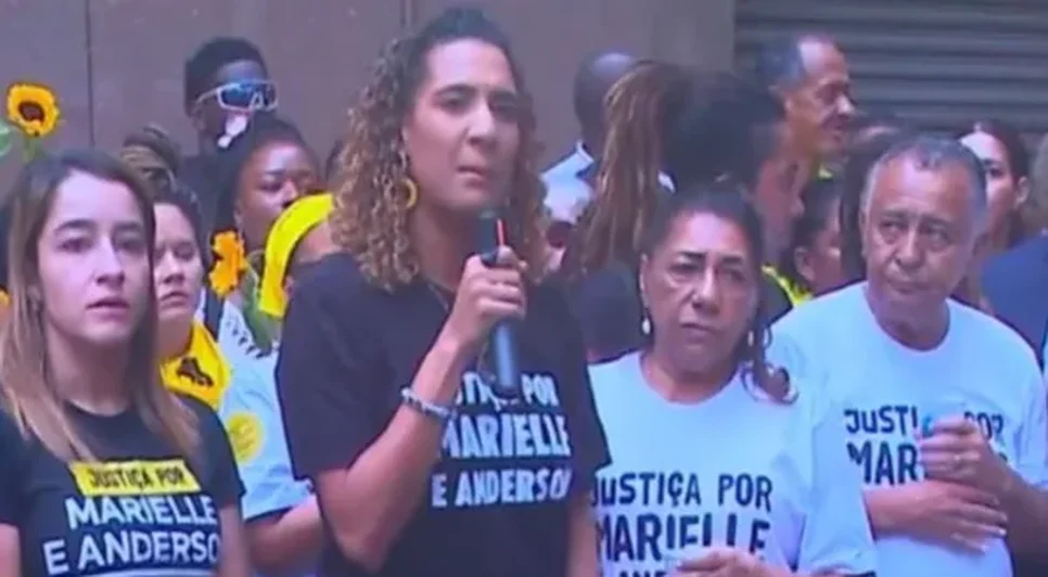 Horas antes do início do julgamento dos responsáveis confessos pelo assassinato da vereadora Marielle Franco e do motorista Anderson Gomes, o 4º Tribunal do Júri do Rio de Janeiro foi palco de um protesto liderado por familiares das vítimas, incluindo a ministra da Igualdade Racial, Anielle Franco, irmã de Marielle.