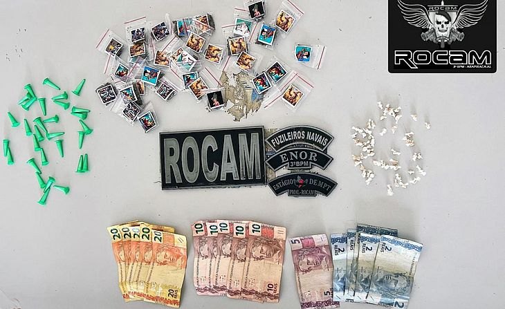 A Polícia Militar realizou ações em Arapiraca, Delmiro Gouveia e Junqueiro no domingo (3), resultando em apreensões de drogas, prisão por violência doméstica e recuperação de um veículo roubado. Em Arapiraca, no bairro Canafístula, equipes do motopatrulhamento do 3º Batalhão interceptaram um suspeito de 23 anos após encontrar cerca de 30 pinos de cocaína, 33 pacotes de maconha e 52 pedras de crack, que ele havia tentado descartar durante a fuga.