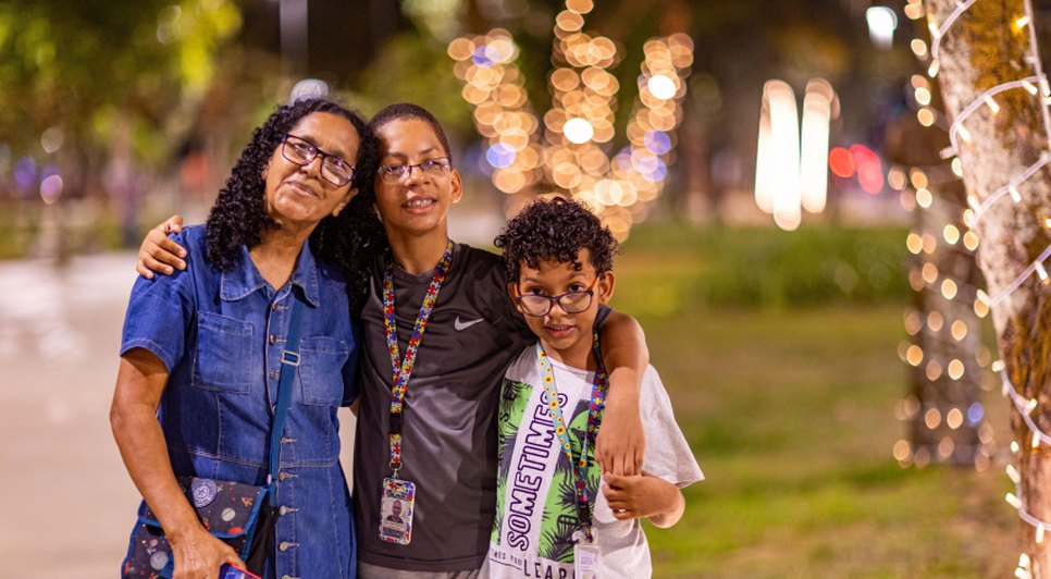 Mesmo com apenas parte da decoração instalada, crianças e jovens já começaram a usufruir dos equipamentos, parando para tirar fotos e celebrando com suas mães e pais, em um passeio pelo parque.