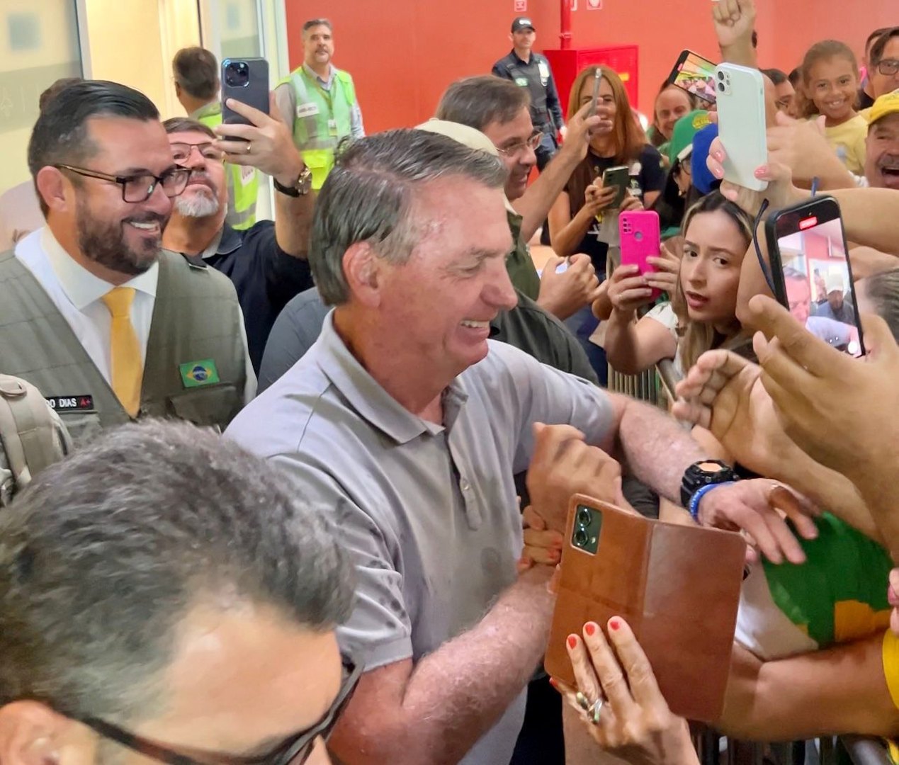 Além de Leonardo Dias, o ex-ministro do Turismo, Gilson Machado e vários apoiadores recepcionaram o ex-presidente.