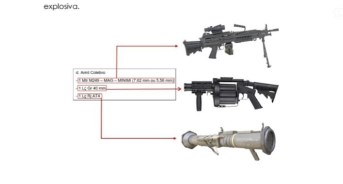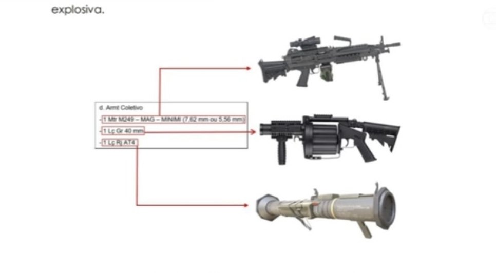 A Polícia Federal (PF) identificou um plano denominado "Punhal Verde e Amarelo", que incluía o sequestro e assassinato do ministro Alexandre de Moraes, do STF. O esquema, elaborado por militares das Forças Especiais, previa o uso de um arsenal pesado, incluindo fuzis calibres 5,56 mm e 7,62 mm, metralhadora Minimi M249, lança-granadas, lança-rojão e pistolas 9 mm e .40, além de munições não rastreáveis.