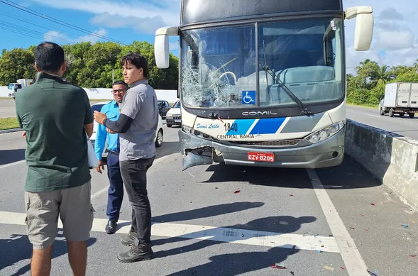 Motorista causa engavetamento com ônibus de viagem na AL-101 Sul