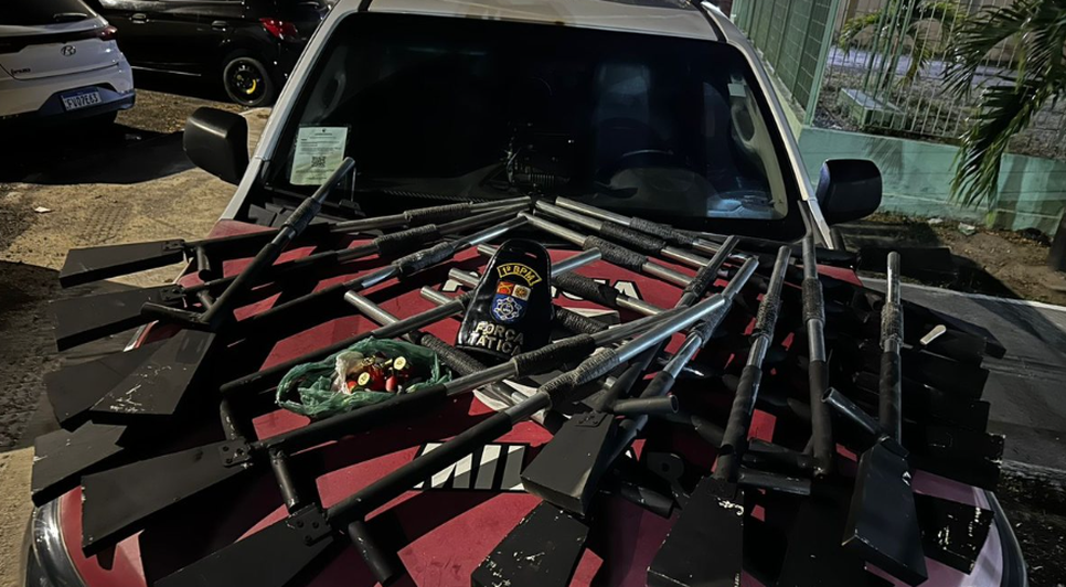 Além disso, os militares observaram a movimentação de uma embarcação e intensa correria no local. Eles também identificaram uma caixa d'água coberta por entulhos. Ao remover o material que estava cobrindo a caixa, os policiais encontraram pacotes contendo 20 armas de fabricação caseira calibre 12, além de munições do mesmo calibre.
