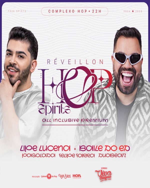 Complexo Hop - Jaraguá - Maceió Atrações: Lipe Lucena; Baile do ED; Pagolada; Felipe Farra; DuoBeatz* Réveillon Possa Crer