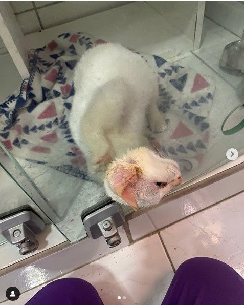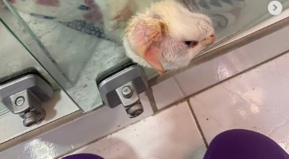 Gato é resgatado após ficar preso em porta de vidro em clínica veterinária em Maceió
