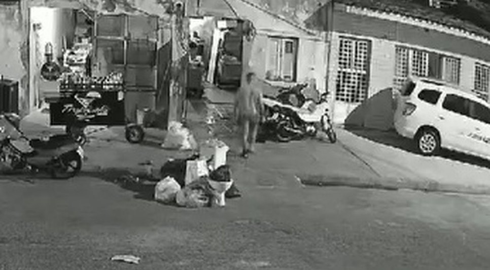 A gravação mostra o momento em que o homem caminha pela calçada da rua Antônio Aguiar, quando uma moto com dois homens se aproxima e efetua os disparos contra a vitima, o homem então corre até sumir das imagens da câmera.