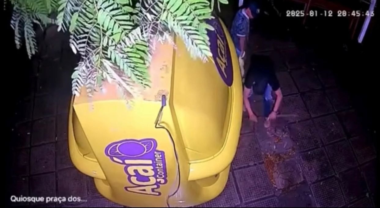 Dupla tenta arrombar quiosque de açaí e desafia sistema de vigilância
